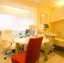 ゆったり広々とした待合室と最新鋭の機器を導入した診察室、メイクルームやソファルームも完備し、快適にご来院いただけるクリニックとなっています。
